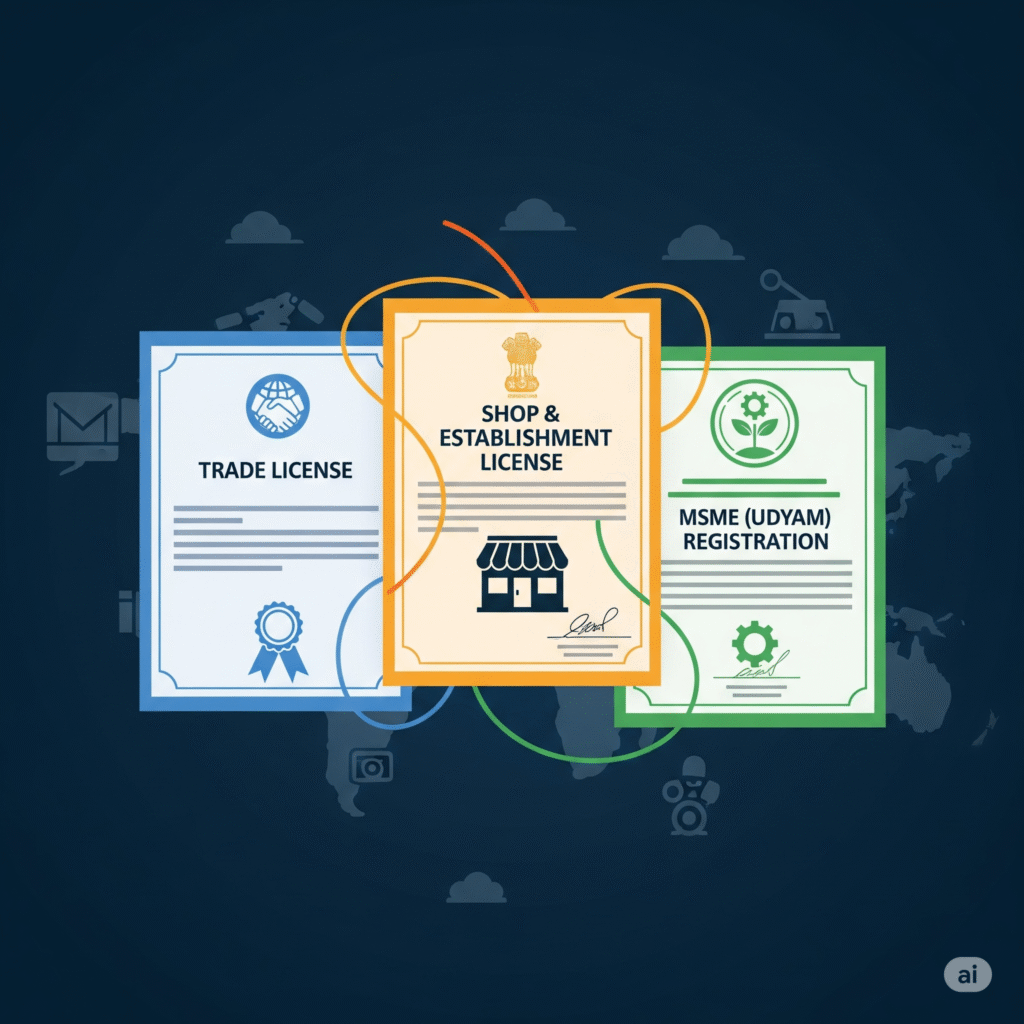 Trade License, Shop & Establishment License, MSME (Udyam) Registration.